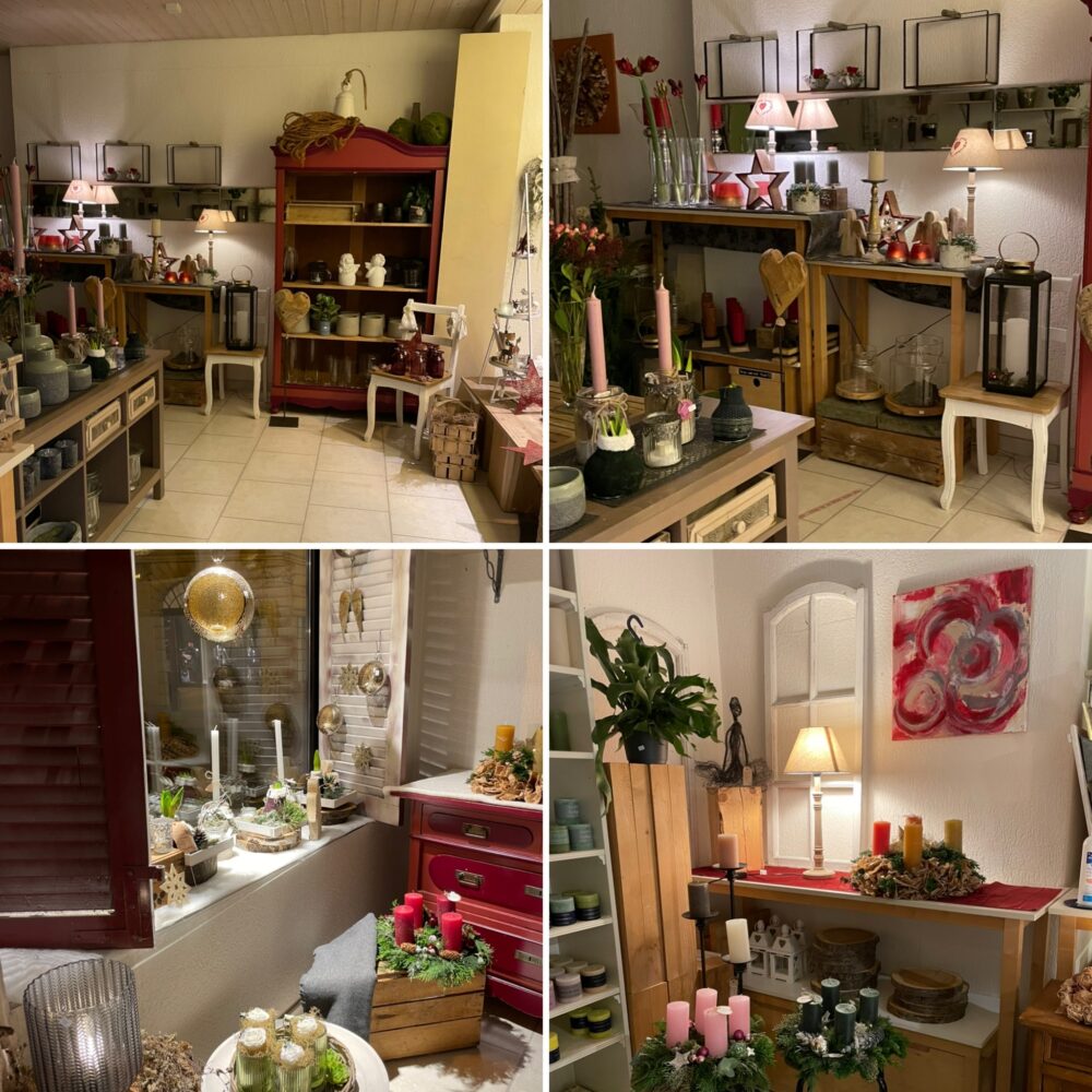 Jedes Jahr um die Adventszeit wird der Laden komplett umdekoriert. Dieses Jahr wurden Holz Natur, Glas mit Rot und Gold sowie Silber mit grün verwendet.